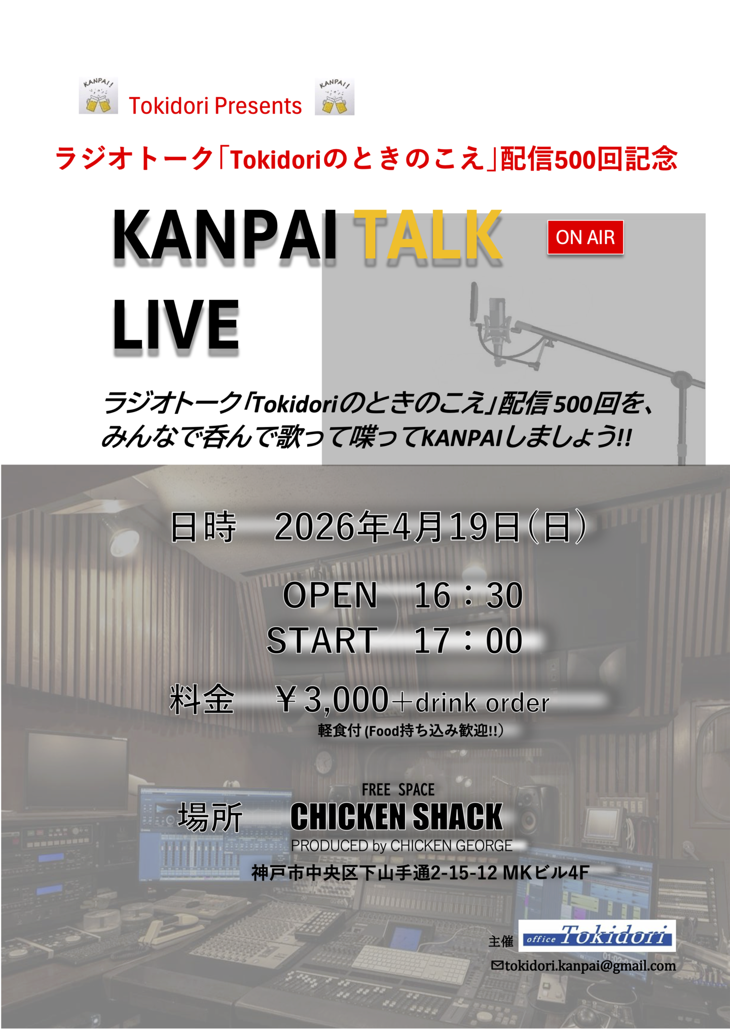 ラジオトーク 「 Tokidoriのときのこえ 」 配信500回を、みんなで呑んで歌って喋って KANPAIしましょう !!